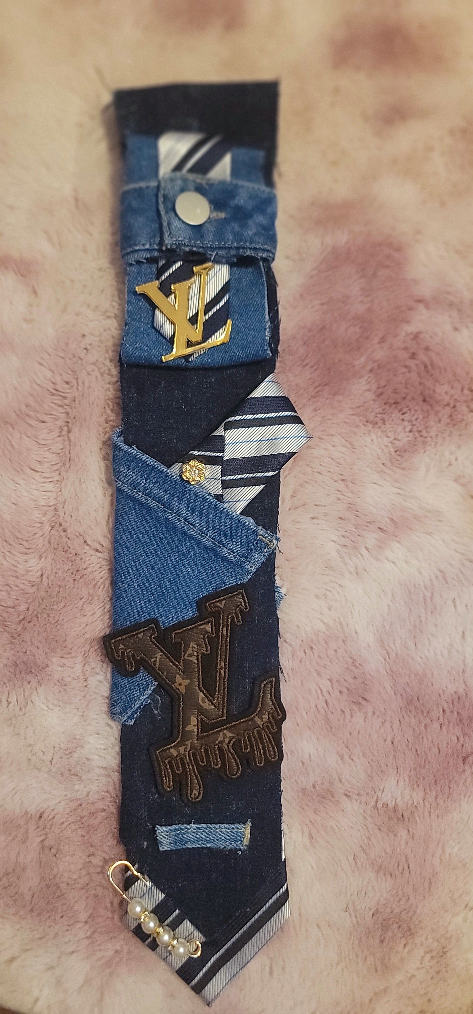 Handmade tie. This tie can be dressed up or dressed down. The brown patch is a leather patch