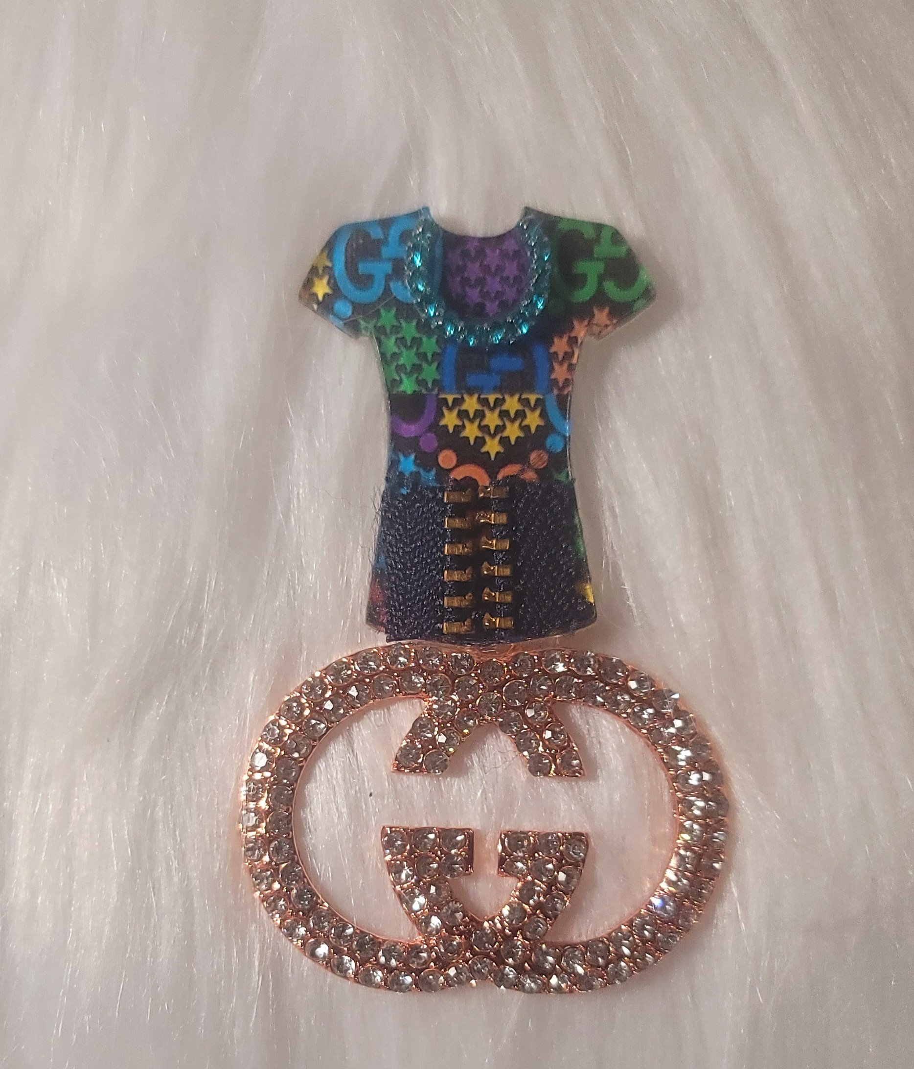 These are handmade broaches with real attached denim pieces that may be used for your ties, shirts, pants, etc. Please be careful in handling