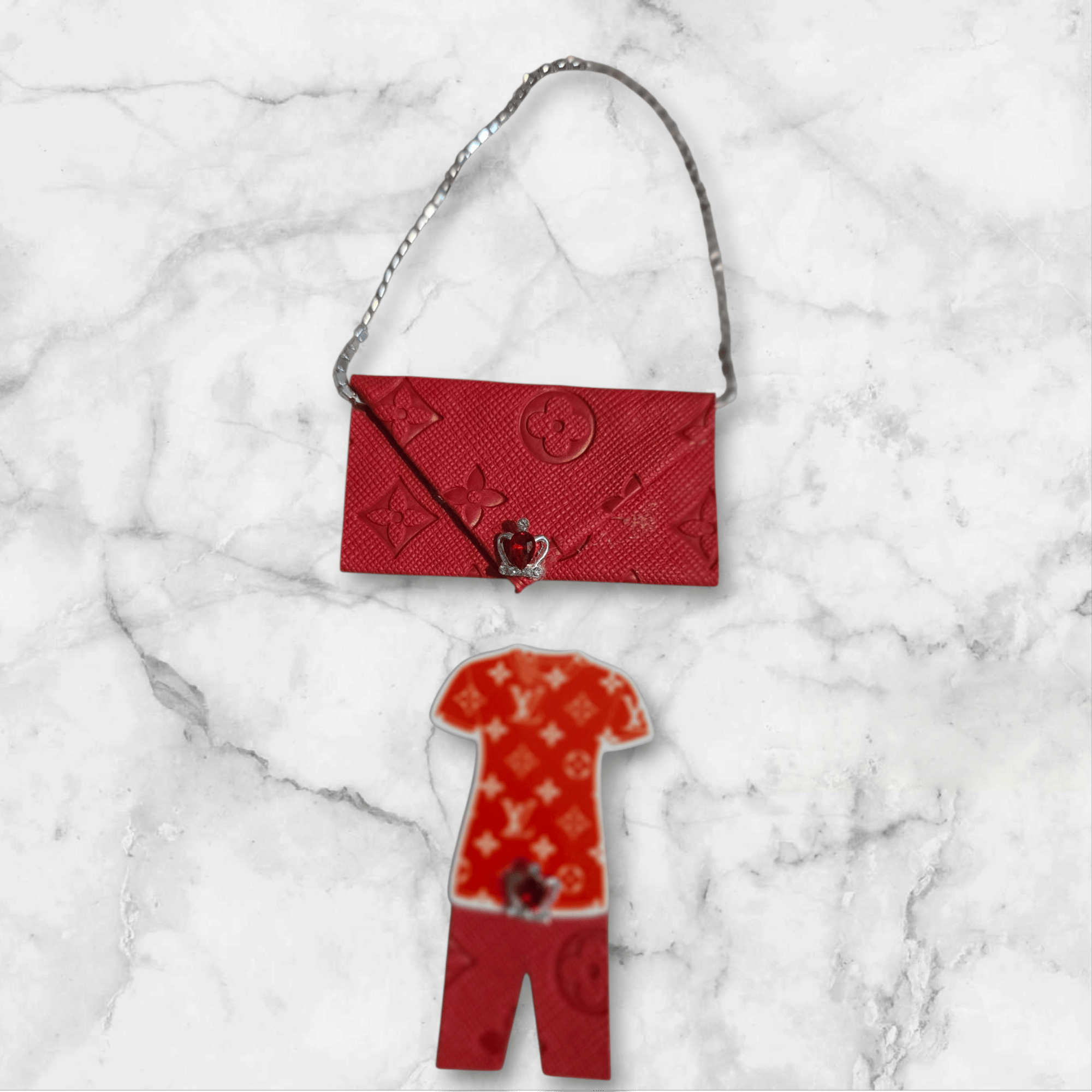2pc handmade set. Purse cannot be used for items to be placed inside. This diy set is a cute way to add to anybof you diy needs