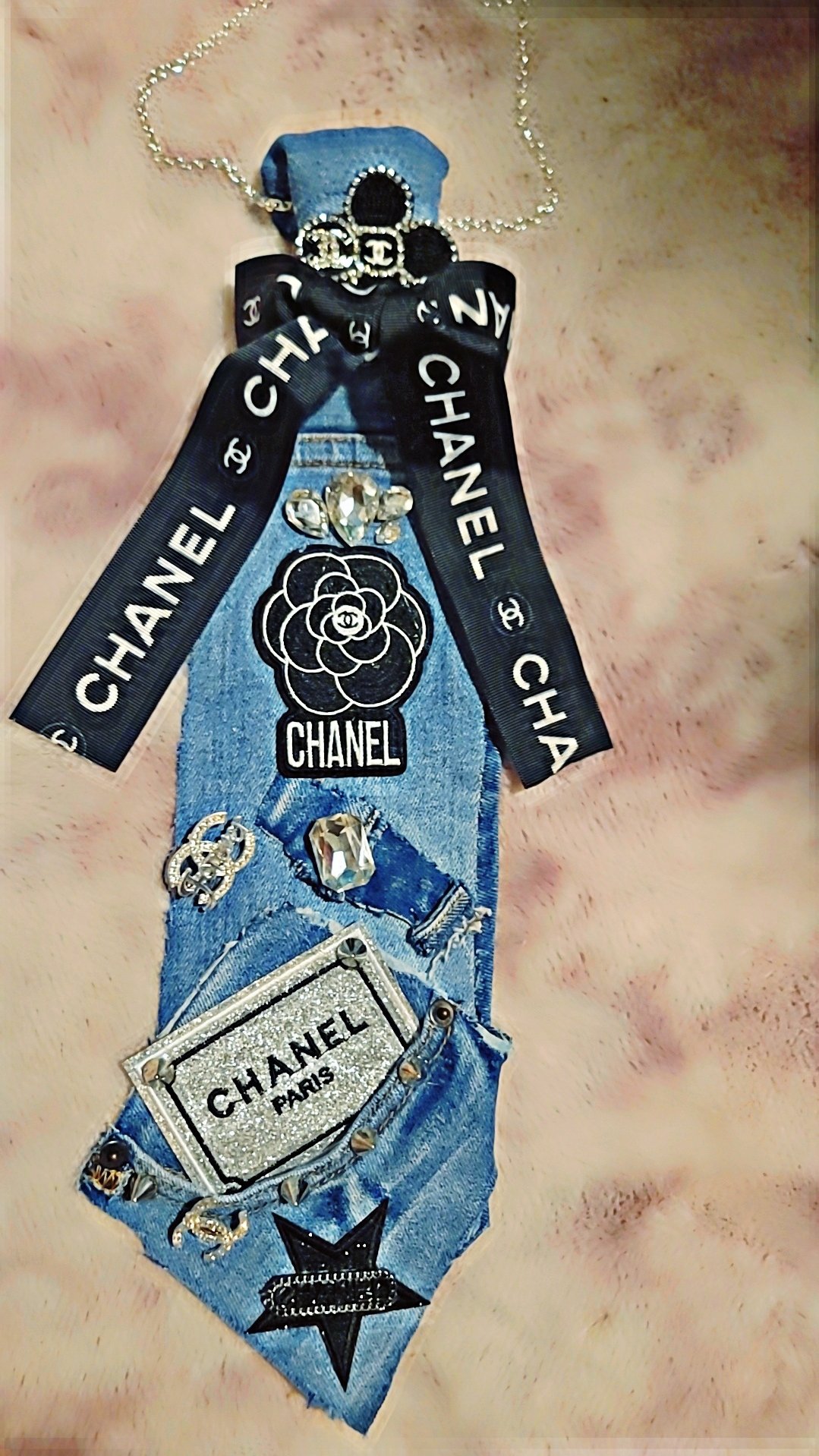 This handmade denim tie is to die for. She can be worn casual or dressed down. Necklaces are not included