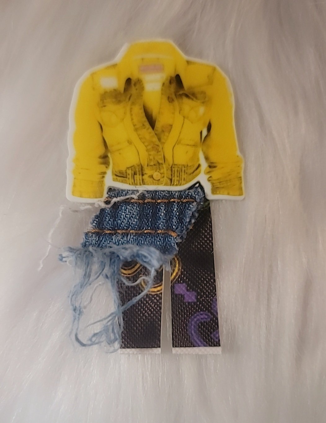 Leather pants with a denim planar jacket Please be mindful that these are handmade items, please be careful when handling when doing your projects.
